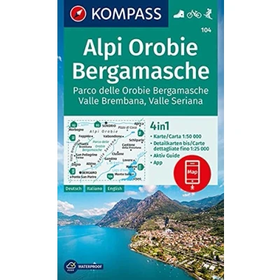 104 ALPI OROBIE BERGAMASCHE PARCO DELLE BERGAMASCHE: 4in1 Wanderkarte mit Aktiv Guide und Detailkarten inklusive Karte zur offline Verwendung in der KOMPASS App. Fahrradfahren. Skitouren.