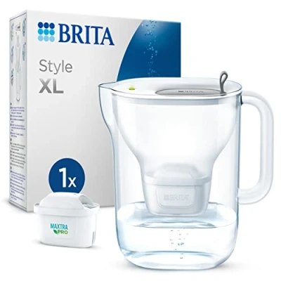 Modern design with innovative BRITA filtration technology: 150L of fresh filtered water in 4 weeks with just one cartridge, larger size designed for high volume use. Easy one-hand filling with the flip-lid with silicone-strap, spout cover, LED Smart Light to remind on filter exchange, BPA-free and dishwasher-safe (except Smart Light). MAXTRA PRO 4-stage filtration with natural activated carbon and ion-exchanger pearls: pure and fresh water, full aroma in your coffee and tea and reliable limescale protection. Filters impurities such as certain herbicides, pesticides and pharmaceuticals, reduces taste-impairing substances such as chlorine, limescale and metals like lead and copper. Improved filter performance: BRITA's new innovative micro-mesh reduces microparticles ≥ 30 μm. 4x better than our previous BRITA MAXTRA+ filter cartridge. The optimal jug for the higher demand: Full capacity of 3.6L for 2.3L of fresh, filtered water. Included: 1x BRITA Style XL water filter jug in Grey, 1x MAXTRA PRO Pure Performance filter cartridge which lasts 150L and is recyclable.