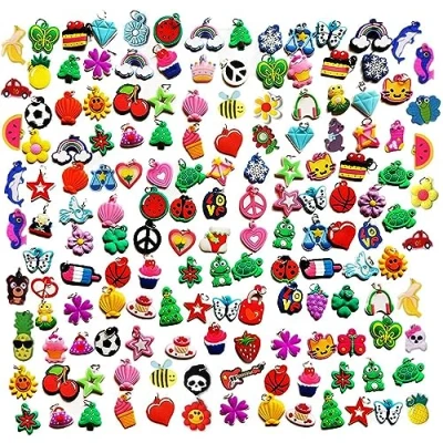 105 charms in each package. Colors, Shapes and Sizes of the Charms are Assorted. Each charm has a ring to enable easy connection to the rubber band bracelet or necklace or anklets. They are New, Colorful and Compatible with all Common Rubber Band Rainbow Loom Kits. We promise that we use high-quality raw materials.non-toxic and tasteless.Free of latex, lead and phthalates.