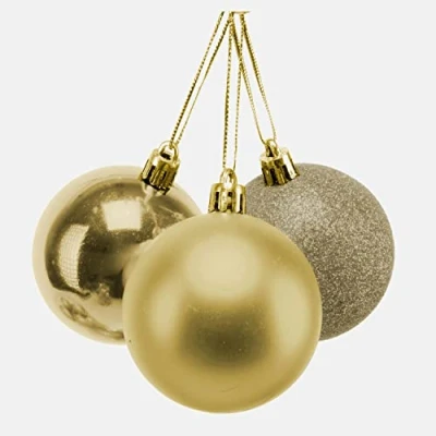 🎄🎅 This pack contains 3 deep gold baubles an assortment of glitter, matte and shiny surface finish. Each bauble measures approximately 10cm and comes with a silver top with a silver string loop attached. 🎄🎅 These Christmas decorations are made of durable plastic to provide a shatterproof, safe finish compared with more traditional glass counterparts. They give the appearance, glitz and glam of glass ornaments without the risk! 🎄🎅 They can also be used to make a garland by threading string or ribbon through the top and hanging them up in the window, from the mantel piece or on the wall. 🎄🎅 Widely used: The durable ball ornaments can be used for indoor & outdoor Christmas decorations, such as Christmas tree, patio, porch 🎄🎅 These Christmassy baubles come in a handy box that they can be stored away in for next year.