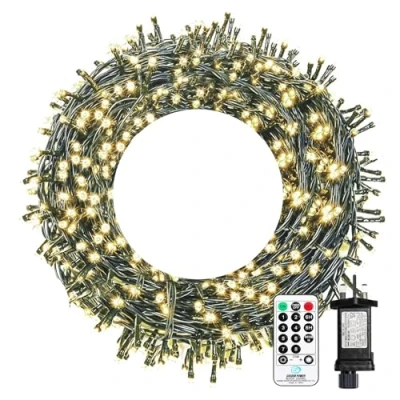 10M 100 LED Christmas Lights Outdoor, Warm White String Fairy Mains Powered, 8 Modes Waterproof Tree with Remote for Outside Indoor Party Garden Bedroom Decorations