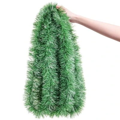 10M Chunky Christmas Tinsel Garland for Tree & Home, Deep Green