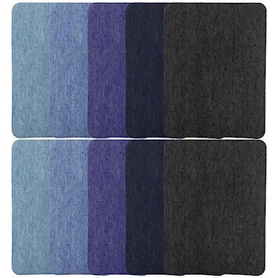 【PACKAGE CONTENT】This set includes 10 iron-on denim patches measuring 4.9x3.7in/12.5x9.5cm each, the perfect size for covering up small or large holes in your clothing. 【PREMIUM MATERIAL】The front of the patch is made of 100% pure cotton, while the back is reinforced with the strongest heat-activated adhesive film for a long-lasting repair. 【EASY TO USE】All you need is an iron! Simply place the patch in the desired location, apply heat for 60 seconds, and you're done. If you don't have an iron, you can also sew the patch on with matching thread. 【CUSTOMIZABLE】Available in four different shades of blue to match your clothing, these patches can be easily cut into your desired size or shape to fit a variety of items such as jeans, clothes, bags, shoes, and hats. 【MACHINE WASHABLE】These patches can withstand high temperatures in the washing machine and dryer. If the patch starts to come off after some time, simply reapply heat. Each patch can be reapplied at least three times.