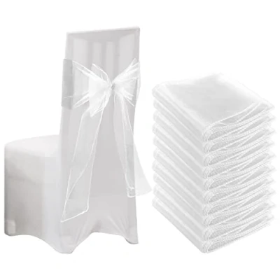 10pcs Organza Chair Bows for Chair, 22x280cm Sashes White Wider Sash Fuller Cover Wedding Decorations Birthday Party (White)