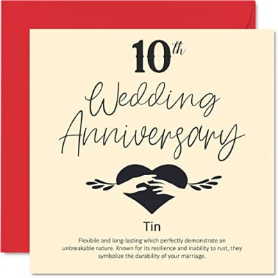 10th Anniversary Card for Husband Wife Boyfriend Girlfriend Wedding Tin Women Men Her Him, 145mm x Greeting Cards Fiance Fiancee