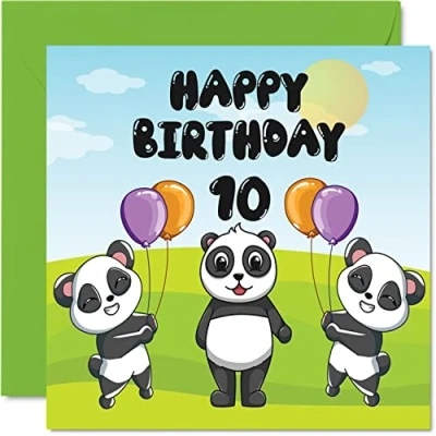 10th Birthday Card Unisex Panda Party Happy 10 Year Old, 145mm x Cute Greeting for Son Daughter Brother Sister Grandson Granddaughter Niece Nephew Cousin