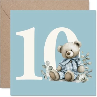 10th Birthday Cards for Boys Number Bears Happy Card 10 Year Old Boy Cousin Nephew Brother Great Nephew, 145mm Bday Greeting