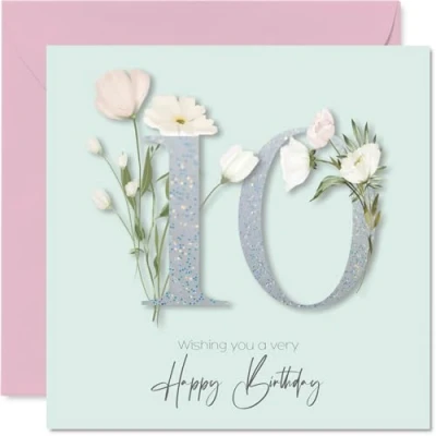 10th Birthday Cards for Girls Fancy Floral Flowers Happy Card 10 Year Old Girl Cousin Sister Step Daughter Niece, 145mm Bday Greeting