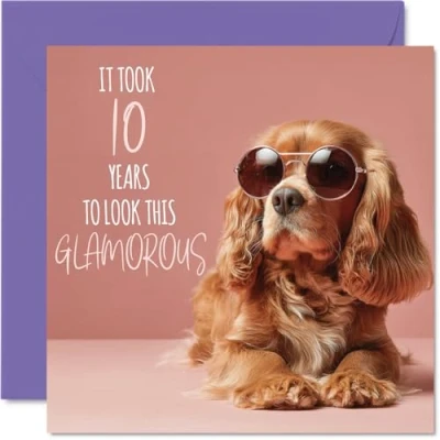 10th Birthday Cards for Girls Glamorous Puppy Happy Card 10 Year Old Girl Niece Cousin Great Daughter, 145mm Bday Greeting