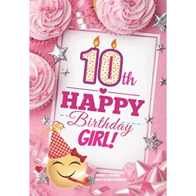 10th Happy Birthday Girl Journal & Coloring Pages Activity Notebook: Cute Emoji Special Card Style Guided Journal, Word Search For Kids To Write In