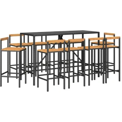 11 Piece Garden Bar Set Black Poly Rattan& Solid Wood Acacia Vidaxl