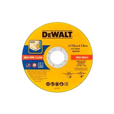 General description The DeWalt DT20593-QZ is a professional-grade aluminium oxide grain bonded abrasive disc designed specifically for cordless tools, maximizing both life and performance. This super thin cutting disc is ideal for general metal cutting work on stainless steel, ferrous, and non-ferrous metals, allowing for quick cuts with excellent maneuverability. The bulk pack of 25 discs offers great value for money, especially when cutting large quantities of metal materials. Technical specifications Disc Diameter: 115mm Disc Bore: 22.23mm Thickness: 1mm Other information Compliant with Australian Standard AS 1788.1-1987