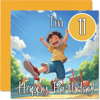 11th Birthday Cards for Boys Anime Kid Happy Card 11 Year Old Boy Son Brother Great Nephew Step Son, 145mm Bday Greeting