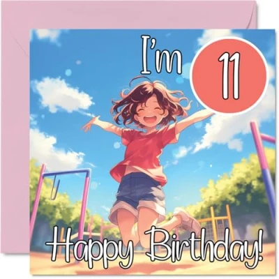 11th Birthday Cards for Girls Anime Kid Happy Card 11 Year Old Girl Great Niece Cousin Step Daughter Goddaughter, 145mm Bday Greeting