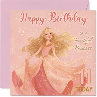 11th Birthday Cards for Girls Princess in Pink Happy Card 11 Year Old Girl Cousin Daughter Sister Goddaughter, 145mm Bday Greeting