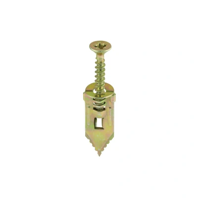 General description A rapid light duty plasterboard fixing designed for easy installation and enhanced corrosion resistance. Technical specifications Dimensions: 4 x 30 mm Material: Zinc plated with yellow passivation Usage Ideal for fixing plasterboard in various applications. Serrated point allows for easy hammering. Other information Comes complete with screws.