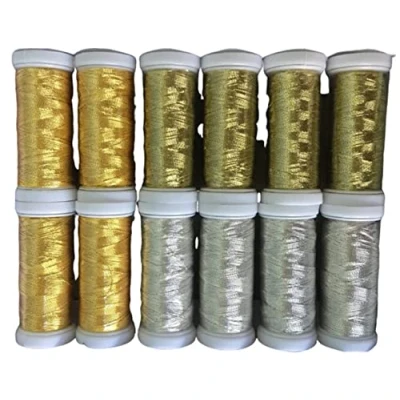 12 Gold, Light Gold & Silver Metallic Sewing Thread 200 Meters each