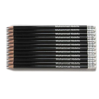 A great gift for all ages, and will end the 'that's my pencil disputes! Also check our listings of hexagonal embossed pencils Pack of 12 Premium quality German HB Round pencils made from a sustainable source. They are PEFC certified and tested by independent labs in accordance with the Safety of Toys regulations EN 71/III High Quality HB Graphite Pencil with eraser tips and are supplied in a strong see through wallet. Amazing colour choice:- * Glacier White * Popcorn Pink * Ocean Blue * Mid Grey * Bright Purple * French Navy * Jet Black * Crimson Red * or we can do a mix!! Let us know the colours/quantities Names are Digitally printed in Silver in either capitals or upper/lower case, two lines of text with up to 30 characters (and spaces). This method of printing offers a choice of font styles and motifs. We are happy to discus your logo on the pencils, please submit designs for approval. Suitable for commercial orders, please contact for special rates for larger quantities.