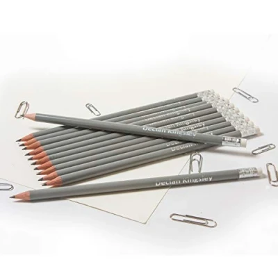 12 HB Round Graphite Pencils Personalised with Name Premium Quality German Made (MID GREY)