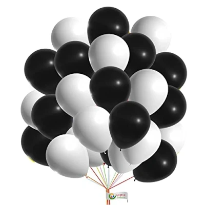 12 Inch Black White Balloons Latex Party Birthday Anniversary Wedding Decoration Plain Round Pack of 30