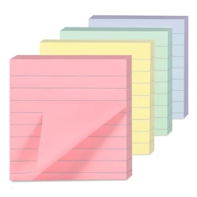 LINED FOR NEAT AND STRUCTURED NOTES: Each note features clean ruled lines to help keep handwriting tidy. Ideal for lists, meeting points, quick reminders, and organised messages. SOFT PASTEL COLOURS FOR A CALM WORKSPACE: Includes yellow, pink, green, and blue in gentle pastel tones. Add a subtle pop of colour to your notebook, desk, or planner. PRACTICAL SQUARE SIZE FOR EVERYDAY TASKS: Measuring 76 x 76 mm (3" x 3"). These sticky notes are just the right size for planning, journaling, and communicating clearly. SECURE SELF-ADHESIVE BACKING: Designed to stick firmly to most flat surfaces, including paper, walls, monitors, and desks, while removing cleanly with no residue. PERFECT FOR WORK, STUDY, OR HOME USE: Great for professionals, students, or anyone who loves to stay organised. Use them for to-do lists, revision notes, creative projects, or quick memos.