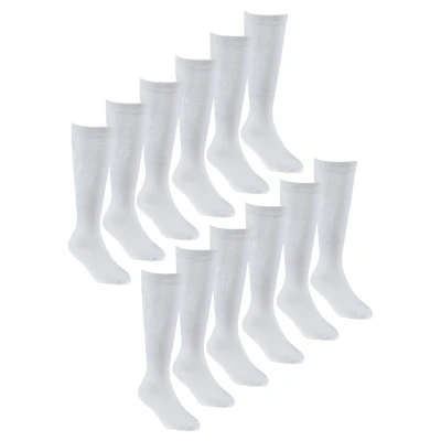 12 Pair Multipack Girls Knee High Bamboo Socks Sock Snob Soft Plain Long School for Kids (4 6 Years, White)