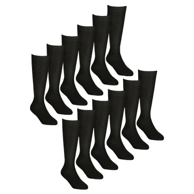 12 Pair Multipack Girls Knee High Bamboo Socks Sock Snob Soft Plain Long School for Kids (7 10 Years, Black)