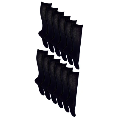 12 Pair Multipack Girls Knee High Socks Breathable Long Cotton School Color Option Grey, Black, White, Blue (8 11 Years, Black)