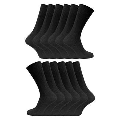 12 Pair Multipack Mens 100% Cotton Socks Sock Snob Ribbed Dress Size 6 11 & 14 (12 14, Black)