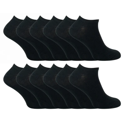 If you are looking for reasonably priced trainer socks that will do the job in terms of durability and comfort then consider our 12 pair value pack range of trainer socks. They are made from 75% Cotton, a high cotton content to keep your feet soft when wearing them for casual wear or even for more athletic activities. The cotton also means that they are breathable, allowing warm air to escape from the foot, keeping your feet cool and dry. They are especially useful when the weather is much warmer than usual. They are ankle length and are knitted correctly to enhance comfort. These socks have a smooth toe seam to reduce irritability around the end of your foot, important especially if you are running or playing sports. These cotton trainer socks are available in 3 colours including Black, Grey and White. They are available in Men’s sizes: 6-11 UK & 12-14 UK, Ladies size: 4-6 UK and Children’s sizes: 3-7 Years & 8-11 Years. They are made out of 75% Cotton, 23% Nylon & 2% Elastane and are safely machine washable.