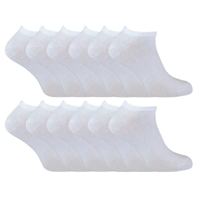 If you are looking for reasonably priced trainer socks that will do the job in terms of durability and comfort then consider our 12 pair value pack range of trainer socks. They are made from 75% Cotton, a high cotton content to keep your feet soft when wearing them for casual wear or even for more athletic activities. The cotton also means that they are breathable, allowing warm air to escape from the foot, keeping your feet cool and dry. They are especially useful when the weather is much warmer than usual. They are ankle length and are knitted correctly to enhance comfort. These socks have a smooth toe seam to reduce irritability around the end of your foot, important especially if you are running or playing sports. These cotton trainer socks are available in 3 colours including Black, Grey and White. They are available in Men’s sizes: 6-11 UK & 12-14 UK, Ladies size: 4-6 UK and Children’s sizes: 3-7 Years & 8-11 Years. They are made out of 75% Cotton, 23% Nylon & 2% Elastane and are safely machine washable.
