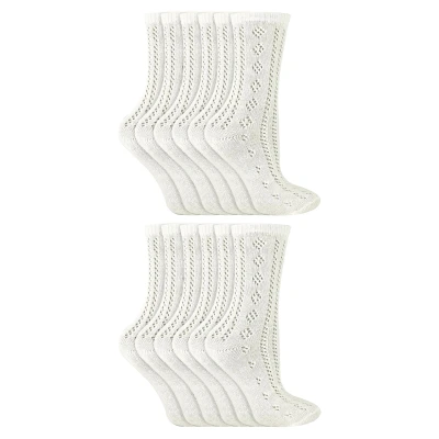 12 Pairs Multipack Girls Pelerine Ankle Socks Cotton Knitted Design White School (4 6 Years, White)
