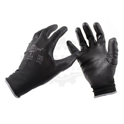 12 Pairs of 'POWCOG' PU Safety Work Gloves PPE Black XL Perfect for Gardening Mechanics Warehouse DIY
