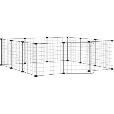 General description This trusty pet cage provides a spacious and safe enclosed space for your lovely pets to exercise, play, and rest. Made of sturdy powder-coated steel, this durable animal cage ensures years of use with minimal maintenance. The design features multiple panels, allowing you to assemble it into any shape and size you desire, providing plenty of room for your pets to play and rest safely within the boundaries. Additionally, the cage includes a practical door for easy access and care of your pets. Technical specifications Colour: Black Material: Powder-coated steel Panel size (each): 35 x 35 cm (L x H) Grid height (each): 4.3 cm Delivery contains: 12 x Panel 24 x Connector 12 x Floor protector 40 x Tie rib 2 x Door clip Installation Each product comes with an assembly manual in the box for easy assembly. Other information
