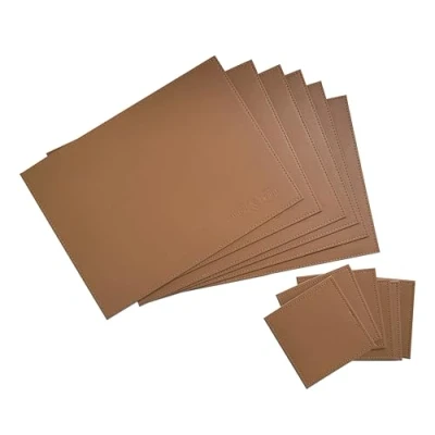 12 Piece Faux Leather Table Set 6 Placemats & Coasters Party Place Mats and Coaster M&W (Brown)
