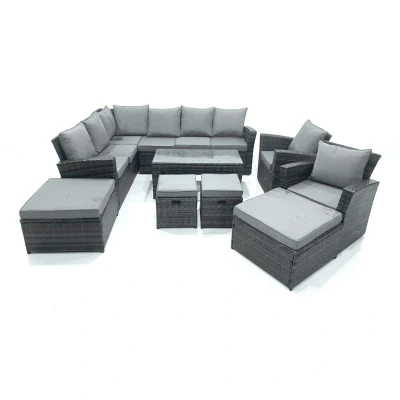 12 Seat Rattan Garden Furniture Corner Sofa Set Outdoor Patio Chair Table with 2 Small Footstools Big Dark Grey Mixed Fimous