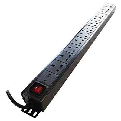12 Way Vertical 13A Surged Protected Switched PDU 19 Inch 1U Standardised Power Distribution Unit 2m Lead