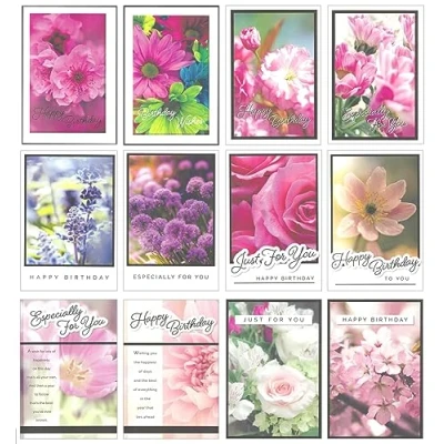 12 x Birthday Cards Multi Pack Various Female Ladies Women Flower Floral Adult B