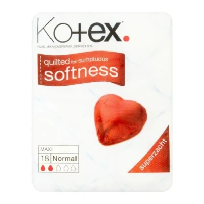 Kotex Maxi Normal Sanitary Towels are quilted for sumptuous softness keeping you feeling fresh and dry. Suitable for a light to medium flow. These sanitary towels are contoured to fit your body with a central protection zone for extra protection.. Kotex Maxi Normal Sanitary Towels. 18 Pack. For light to medium flow. Quilted for softness. Contoured to fit your body. Dermatologically tested