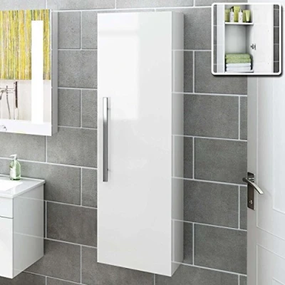 1200 mm Tall White Bathroom Furniture Wall Hung Modern Cupboard Cabinet Storage Unit MF822