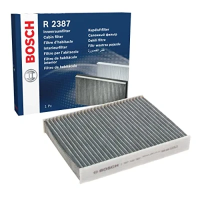 Breathe fresher air: The Bosch Activated Carbon Cabin Filter captures pollen and fine dust, ensuring cleaner and more pleasant air quality in the vehicle Against bad smells: Retains harmful gases such as ozone and exhaust fumes whilst neutralizing foul-smelling gases Helps demist your windscreen: The cabin filter reduces windscreen misting, so you can set off faster when starting your car in the morning Protects the air conditioner: The filter protects your car's air conditioning system from dust and dirt, helping it to stay cleaner Compatibility: Input your vehicle identification number into the parts' search function to find the right cabin air filter for your vehicle Installation manual included: Refer to the PDF instruction manual for guidance - All work should be carried out by trained professionals Scope of delivery: 1 Bosch R2387 Activated Carbon Cabin Filter - Packaging dimensions: Height 35 mm, Length 240 mm, Width 190 mm