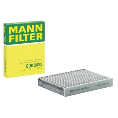 MANN-FILTER Cabin Air Filter CUK 2433 / Dimensions (mm): A = 240; B = 190; H = 35 / Premium Filter in Original Equipment Quality High-quality MANN-FILTER cabin filters with active carbon - nearly 100% protection from particles like pollen, diesel soot & tyre abrasion / Additional protection from harmful gases & unpleasant odour The trated highly-effective activated carbon gives protection against harmful gases such as ozone, nitrogen oxide or sulphur dioxide and eliminates unpleasant odours during the entire service interval Looking to find the correct filter? Select: brand, model, vehicle type, and engine type above to see which one fits your vehicle MANN+HUMMEL complies with REACH-regulation + supports the goal of Improved health and safety through the design, manufacturing, usage, disposal and recycling of our products