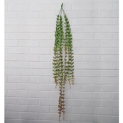 General description Extra long hanging string of pearls plant, perfect for adding a touch of greenery to your indoor space. These artificial plants feature realistic leaves and vines made from plastic, making them a low-maintenance option for home decor. Technical specifications Length: 120 cm Width: 25 cm (when laid flat, width can vary depending on arrangement) Usage These artificial plants look particularly good when hung as a group, creating a realistic foliage effect that enhances your indoor environment. Other information This product is designed for indoor use only.