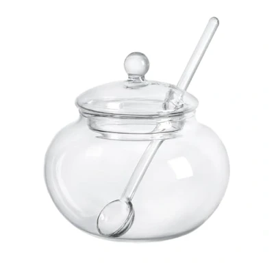 123Arts Clear Glass Sugar Bowl With Lid and Serving Spoon,8 ounces