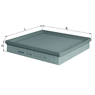 MAHLE engine air filter LX 500 // Dimensions (mm): L: 233 x W: 236 x H: 42 // Premium filter in OE quality High quality filter material for durability, meeting vehicle manufacturer’s quality, maximising fuel efficiency Captures up to 99.98% of toxic dust, soot, and tyre particles; High dust holding capacity Impregnated with special synthetic resin that increases the resistance of the filter to water and chemicals; Glue beads on the backs of the folds help the filter elements retain their shape Prevents premature wear of valves, cylinder surfaces, piston rings, bearings, and other engine components; Must be replaced at the intervals prescribed by the vehicle manufacturer