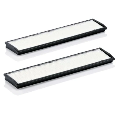 MANN-FILTER Cabin Air Filter CU 3822-2 (set of 2) / Dimensions (mm): A = 372; B = 85; H = 20 / Premium Filter in Original Equipment Quality High-quality MANN-FILTER cabin filters offer almost 100% protection against particles such as pollen, diesel soot and tyre abrasion - for a feel-good climate in the vehicle interior and protection of the air conditioning system Exact fit and perfect tightness ensure constant filtration performance during the entire service interval / Optimum vehicle interior ventilation due to the high air flow capacity Looking to find the correct filter? Select: brand, model, vehicle type, and engine type above to see which one fits your vehicle MANN+HUMMEL complies with REACH-regulation + supports the goal of Improved health and safety through the design, manufacturing, usage, disposal and recycling of our products