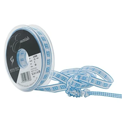 A unique slotted gingham with a draw thread It can be used flat in the conventional way or ruched to create a ruffle for 3D interest Ideal for any textile or craft application It comes in a sky colour Ribbon measures 20 m length by 12 mm width