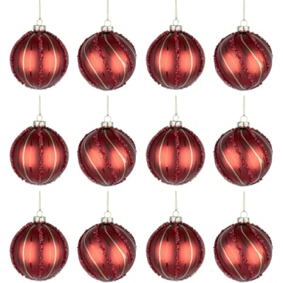 12Pcs/80mm Glass Baubles Christmas Tree Balls Spheres Hanging Ornaments Set Assorted Designs Xmas Decorations