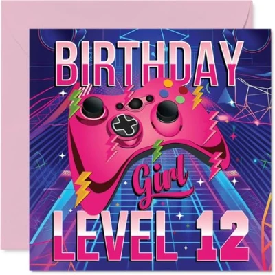 12th Birthday Cards for Girls Gamer Level Happy Card 12 Year Old Girl Daughter Niece Cousin Sister, 145mm Bday Greeting