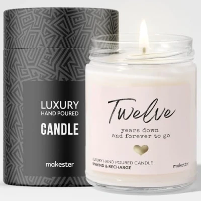 12th Wedding Anniversary Candle Gift Luxury Soy Wax Vanilla, Jasmine, Sugared Almond Makester